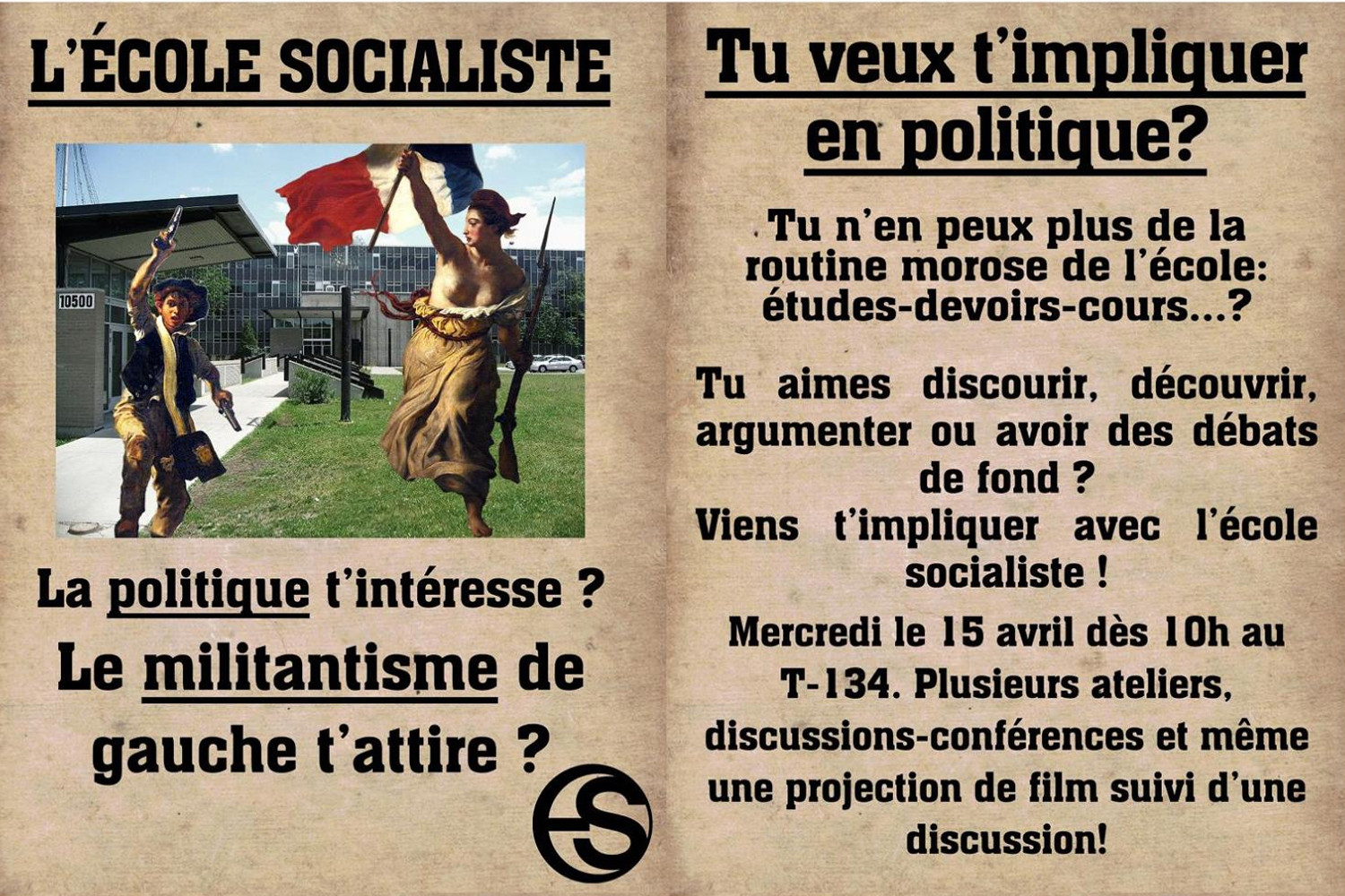 Journée de rencontre, de réflexion et de formation, cet événement est ouvert à toutes et tous qui veulent en apprendre davantage sur l’implication politique de gauche. Vous pourrez assister à des ateliers, des discussions-conférences et une projection de film. C’est gratuit, venez en grand nombre!